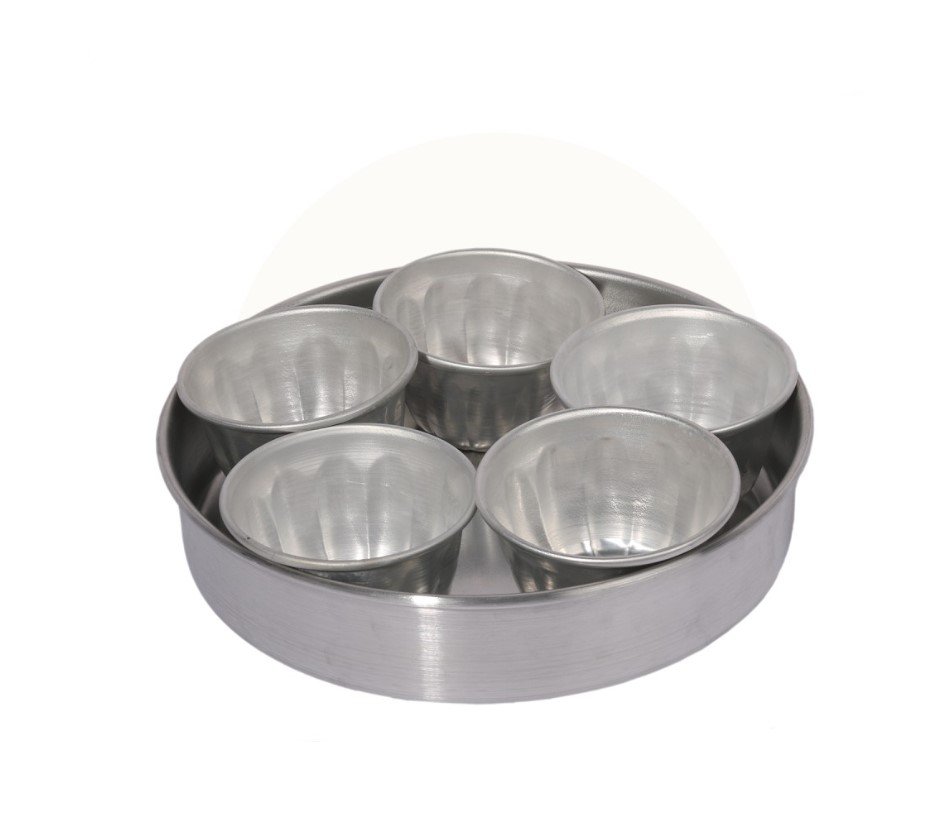 اسم المنتج: طقم صحون معدنية 6 قطع مع مغلف داخلي و5 بوادي مع صحن.