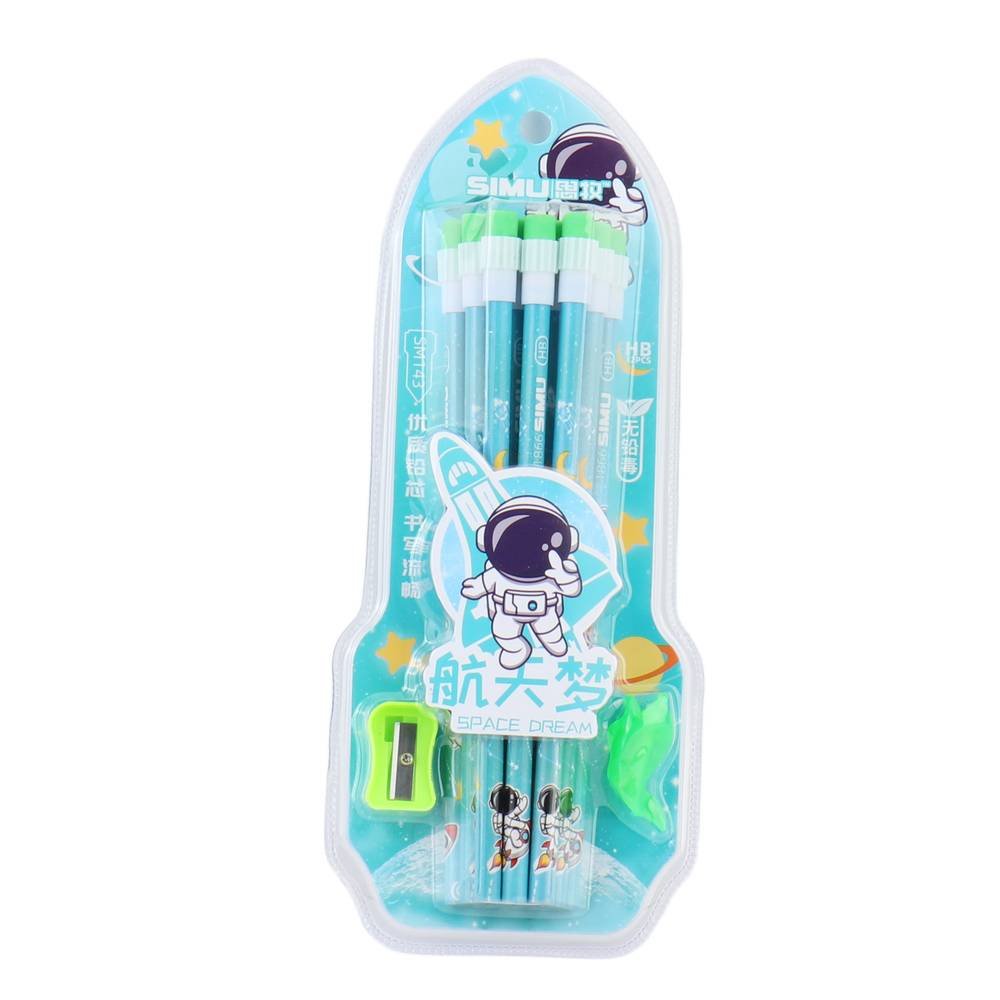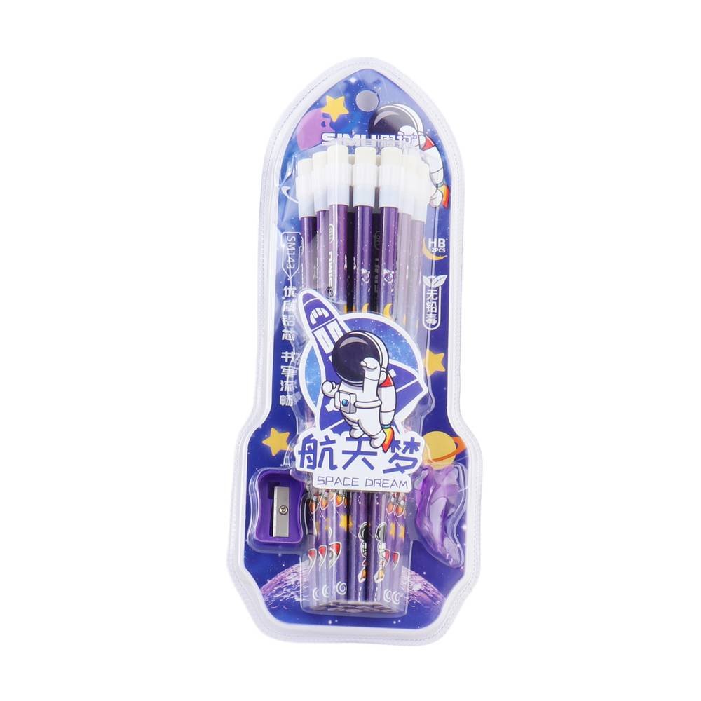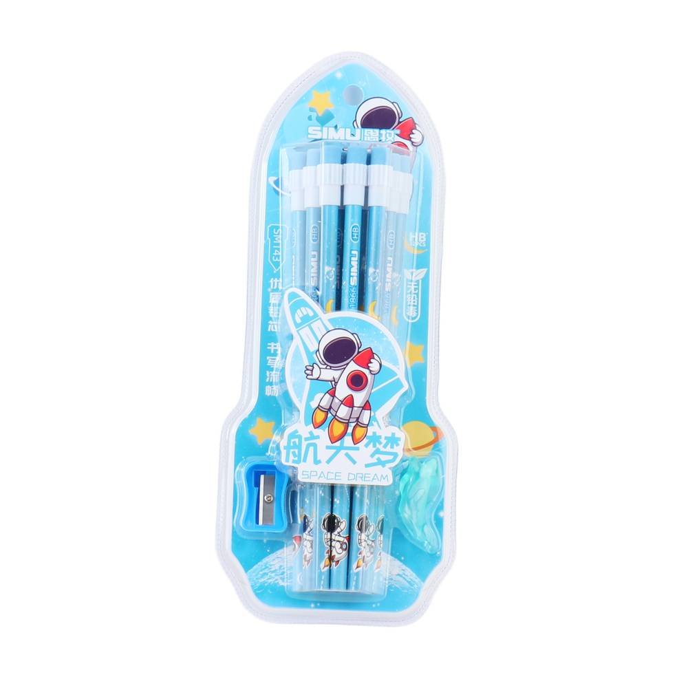 كرت أدوات مدرسيـة برسومات شخصيـة كـرتـونيـة تناسب الأولاد داخل المغلف 12 أقـلام رصاص مع بــرايــة ومثبت أقـلام
